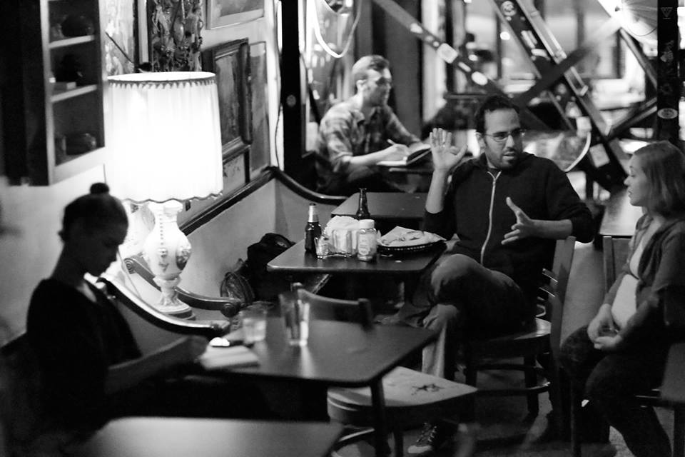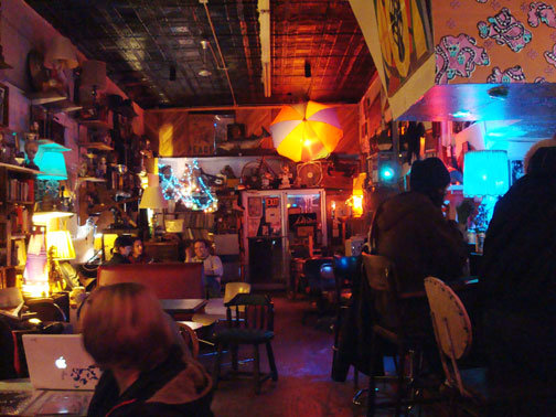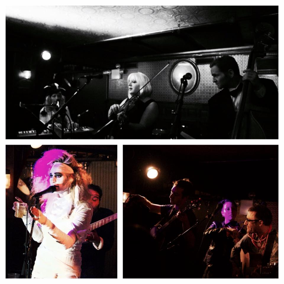 The first time I saw Mary-Elaine Jenkins walk on stage I almost balked. TRS was at Goodbye Blue Monday to see Matt Frye. His set had ended, and I was starving. I ordered a cheap beer and a cheap burger. Intrepid photog, Andreea, and I shot the shit with Mr. Frye and his wife Rivka. Andreea snapped my favorite pic of me. It is a testament to her ability that she makes me and a junk store/bar look like a couple of class acts. Believe me, GBM is no swanky joint, and I am not that well put together.